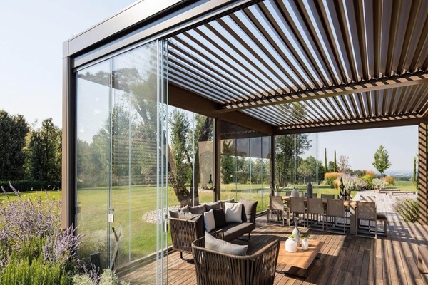 Благодаря этому биоклиматическая пергола становится универсальным решением для использования в течение всего тёплого сезона.